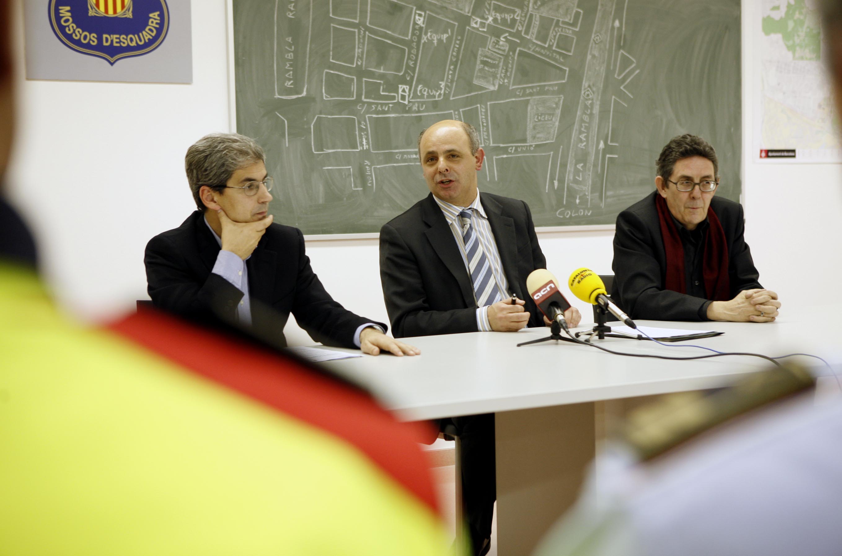 Guillamet, Eva (2008-04-17)Fotografies de la roda de premsa del conseller del Departament d'Interior, Relacions Institucionals i Participació Joan Saura i Laporta a a la sala de premsa de la comissaria de Les Corts de Barcelona ... -