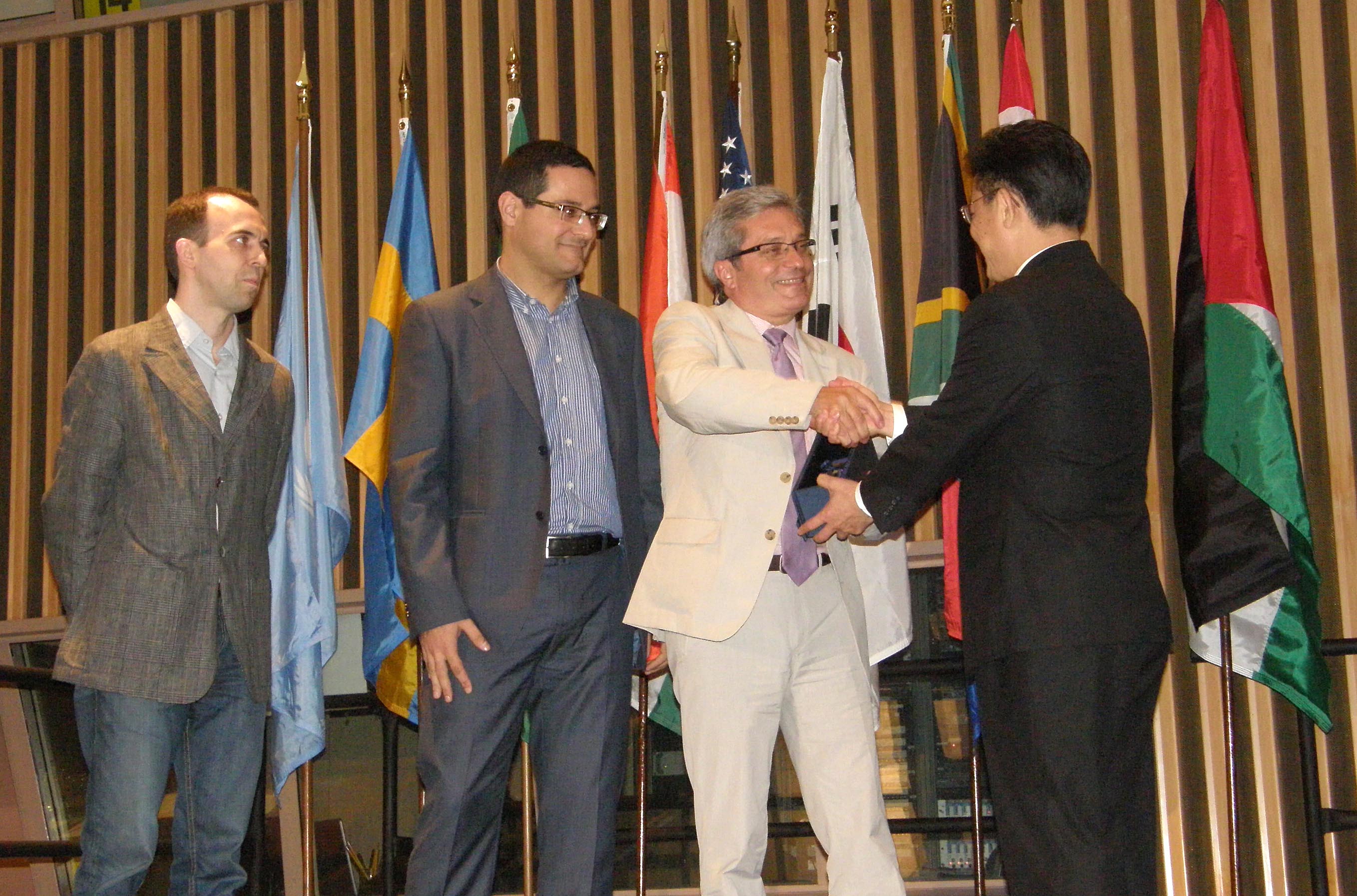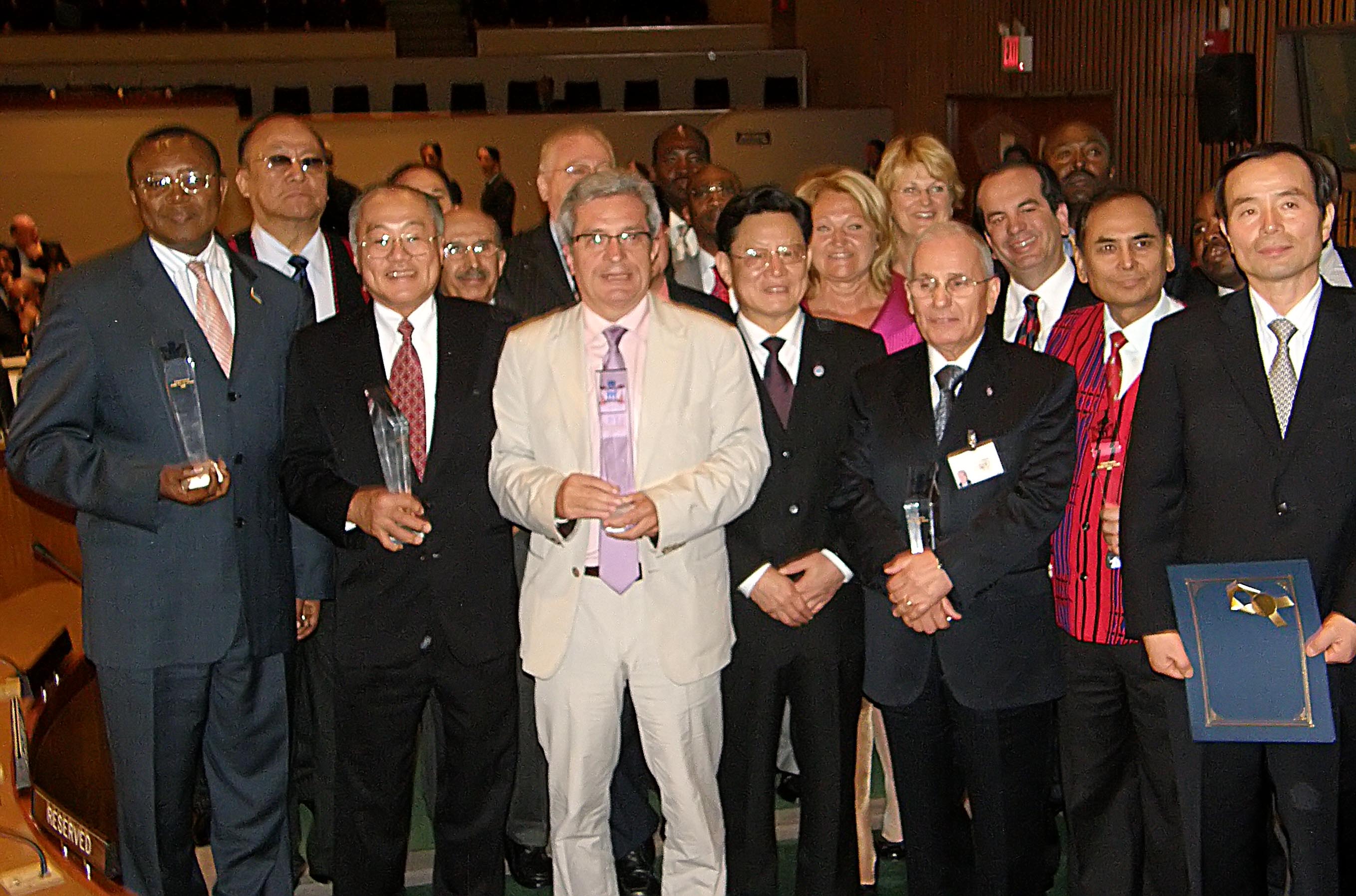 Recollida del guardó que atorguen les Nacions Unides a iniciatives de foment de la participació ciutadana en la presa de decisions polítiques (2008) [Fotografia]