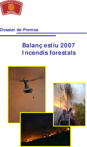 Departament d'Interior, Relacions Institucionals i Participació. Campanya forestal 2007: Presentació i Balanç. Barcelona: Departament d'Interior, Relacions Institucionals i Participació, 2007. 1 presentació; 1 nota de premsa