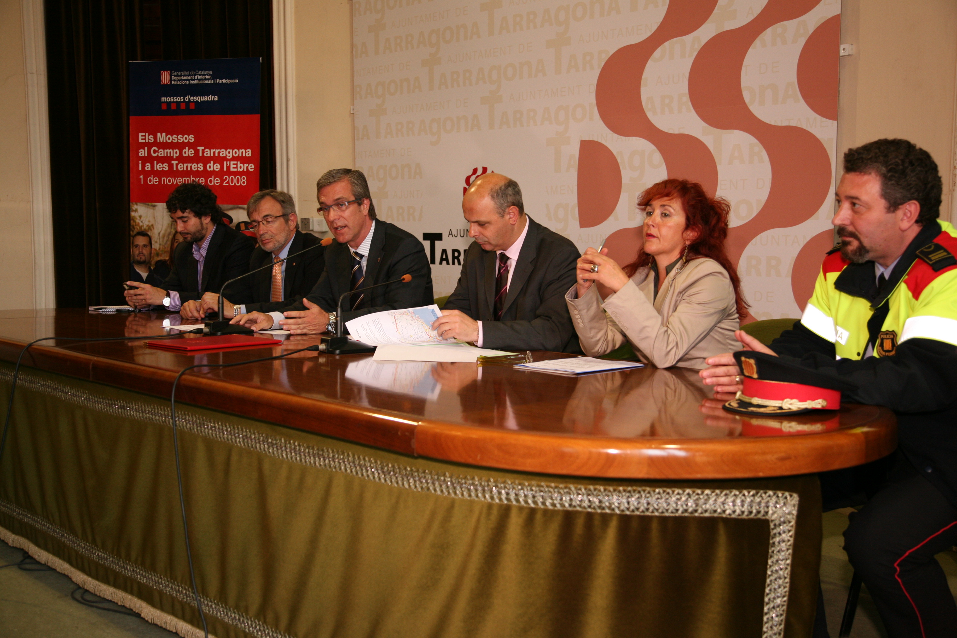 Departament d’Interior, Relacions Institucionals i Participació. Roda de premsa per explicar l’acord assolit per a la ubicació provisional dels Mossos d’Esquadra de la Regió Policial del Camp de Tarragona. Barcelona: Departament d’Interior, Relacions Institucionals i Participació, 2008. 1 fotografia