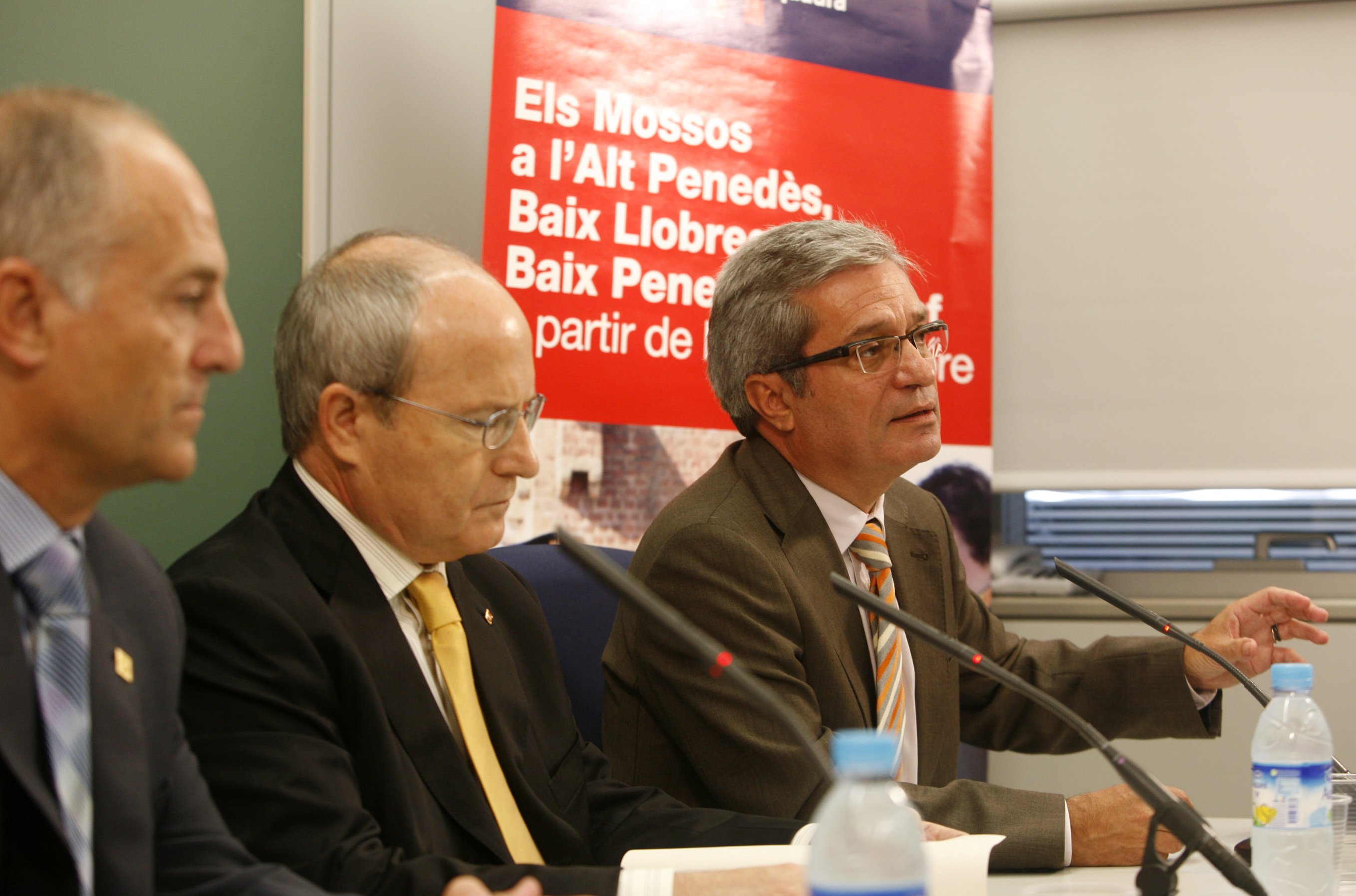 Guillamet, Eva (2007-10-30)Fotografia del conseller Saura a la signatura de conveni amb l'ajuntament de Viladecans per al desplegament dels Mossos d'Esquadra -
