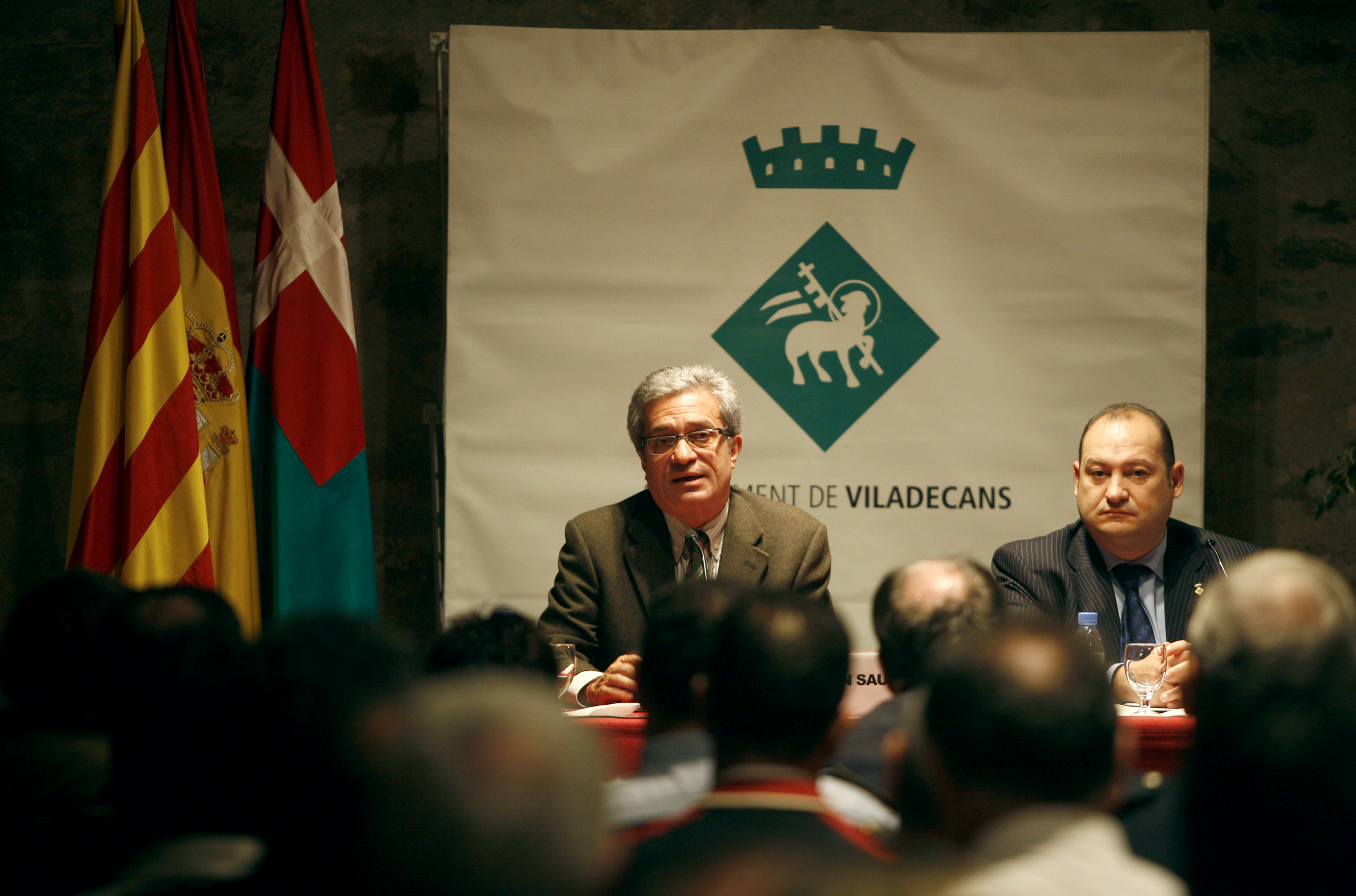 Fotografia del conseller Saura a la signatura de conveni amb l'ajuntament de Viladecans per al desplegament dels Mossos d'EsquadraCitación recomendada
