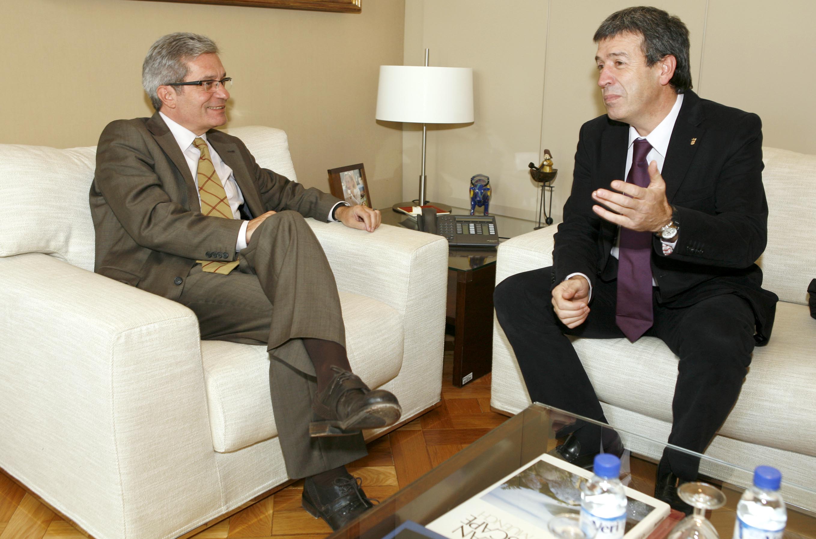 Guillamet, Eva. Trobada del conseller amb el síndic d'Aran. Barcelona: Departament d’Interior, Relacions Institucionals i Participació, 2007. 1 fotografia.