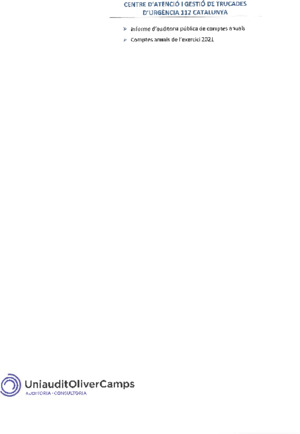 (2021)Informe d’auditoria emès per Uniaudit Oliver Camps, S.L., sobre els comptes anuals del CAT112 corresponents a l’exercici tancat el 31 de desembre de 2020. Inclou la revisió del balanç de situació, el ... -