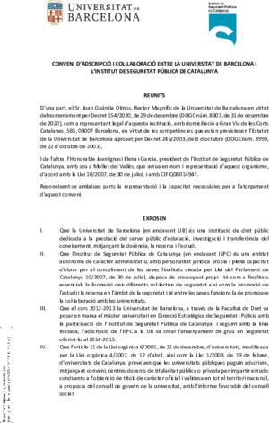 Conveni regulador de les condicions de l’adscripció de l’Institut de Seguretat Pública de Catalunya a la Universitat de Barcelona.Recommended citation